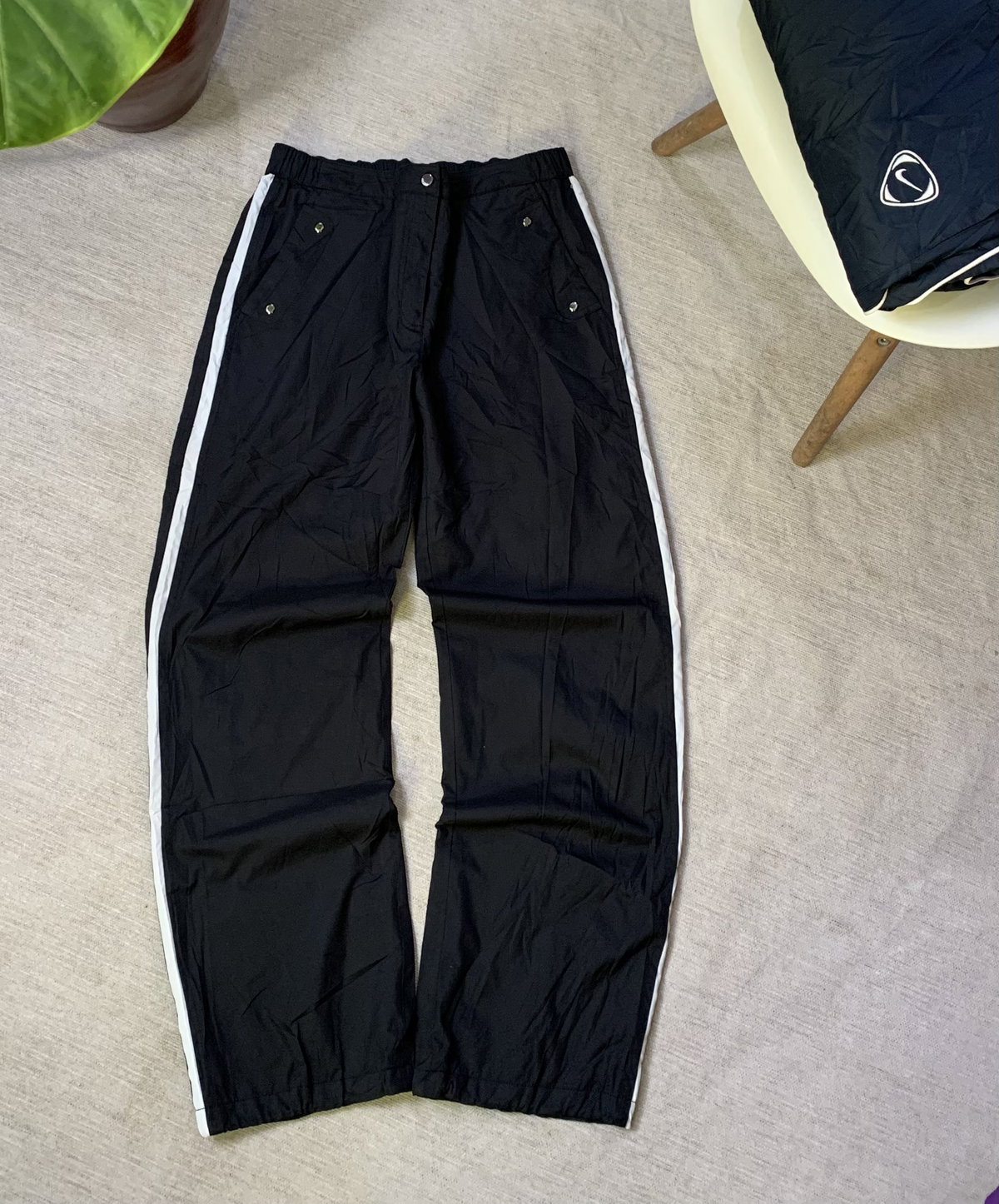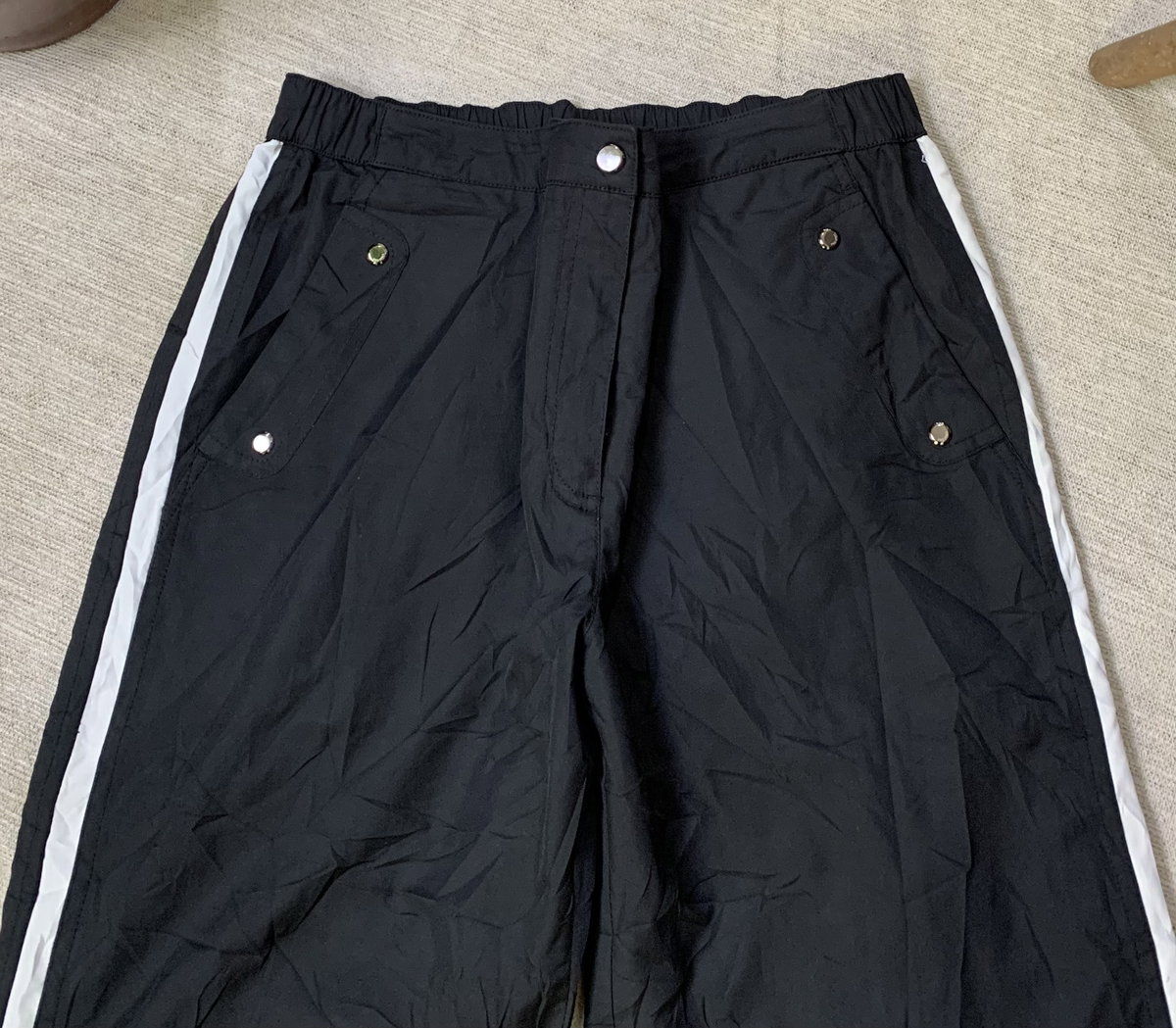 .Talle: M Mujer.Largo: 100 cm.Cintura: 39 cm se estira hasta 44 cm.Tiro: 25 cm.Ancho de botamanga: 23 cm